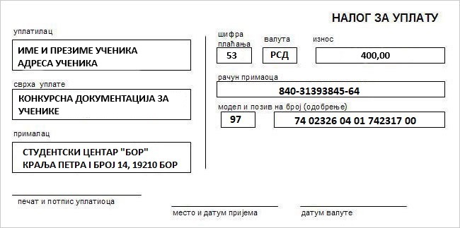 -Конкурсна документација за ученике: 400,00 динара