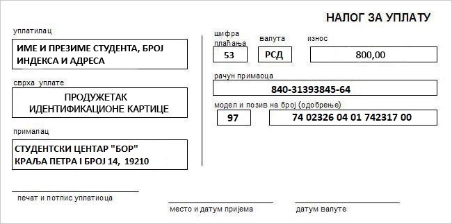 Продужетак ученичке картице: 800,00 динара
